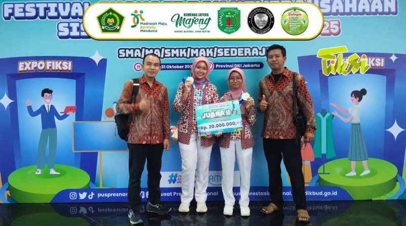 Kudus – Prestasi membanggakan kembali ditorehkan oleh peserta didik MAN 2 Kudus. Dua siswi berbakat, Naila Kirania Maulidia (XII.7) dan Kitana Aisya Az-Zahra (XII.1) berhasil meraih Juara 2 kategori Seni Rupa dan Desain dalam ajang bergengsi Festival Inovasi dan Kewirausahaan Siswa Indonesia (FIKSI) 2025 yang diselenggarakan oleh Direktorat Jenderal Pendidikan Menengah (Dikmen), Kementerian Pendidikan, Kebudayaan, Riset, dan Teknologi (Kemendikbudristek).